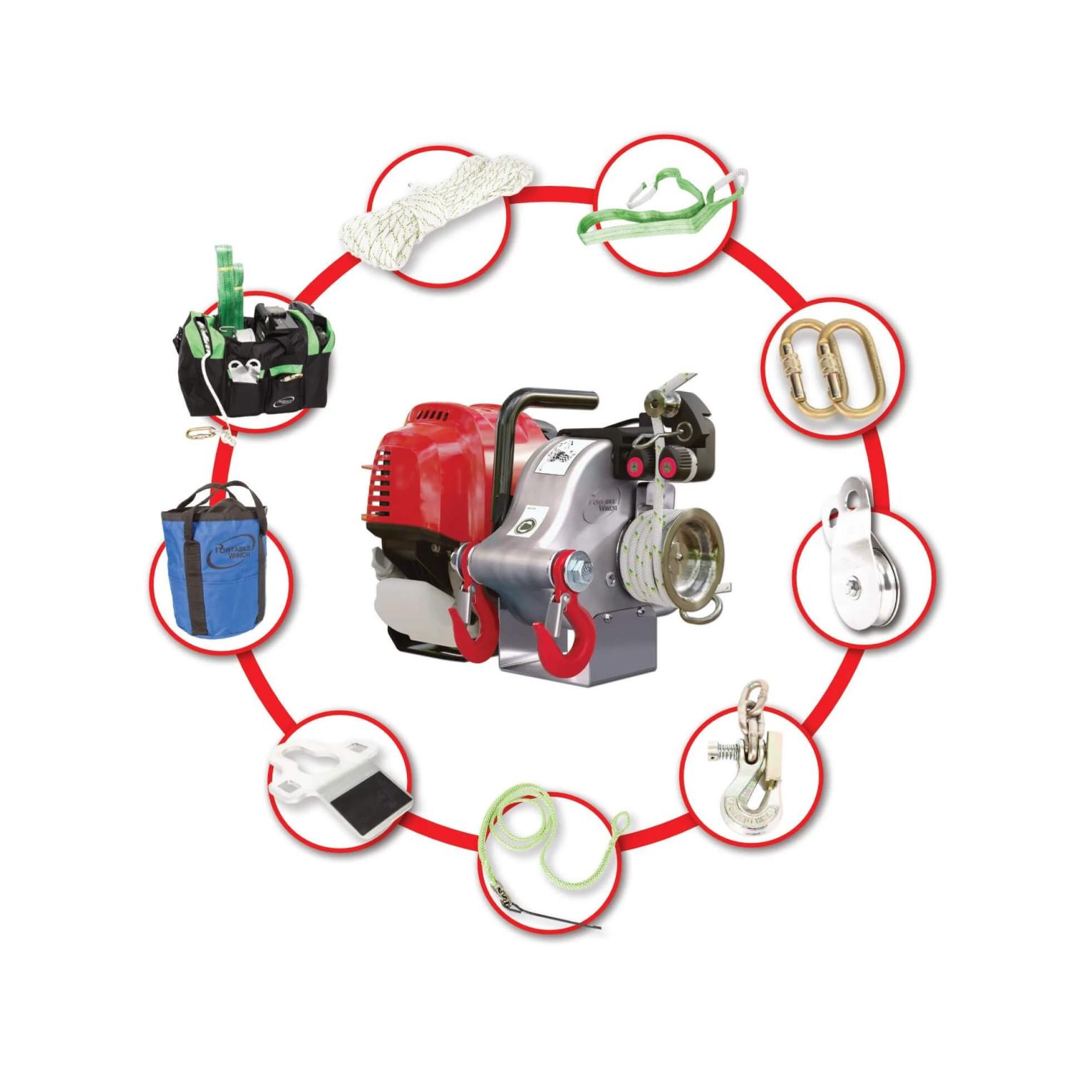 PCW-4000HK är ett kit med den portabla bensindrivna vinschen PCW-4000 och tillbehör specifikt anpassad för jägare.